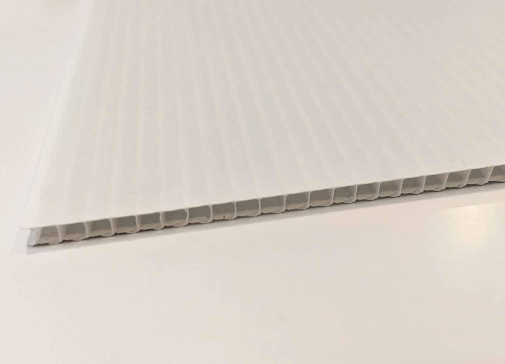 Die Platte steht mit Wellen- oder mit Wabenstruktur zur Verfügung. Das Material ist weiß und 3 mm dick. Ab einem Mindestformat von 10 cm x 10 cm können Höhe sowie Breite frei gewählt werden. Zudem sind die Platten auch mit Bohrungen erhältlich, dann befinden sich in den Ecken Löcher mit einem Durchmesser von 4 mm. Diese ermöglichen ein einfaches Anbringen. Aber auch ohne Bohrung sind die Platten erhältlich.